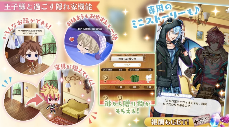 2025年時点で170人以上の王子キャラクターが登場します。全員に個別のストーリーと声優ボイスが用意されています。